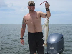 Capt. Brandt, Thank you for such a great day of fishing. I must admit that I was looking forward to chartering your boat to spend the day working on my tan, and maybe do a little fishing. I didn’t anticipate getting such a rush from catching fish! I know my boyfriend was jealous because I caught one of just about every species out there, including the shark. Sightseeing was equally amazing! I didn’t expect to see so many dolphins, a manatee and even a sea turtle, not to mention all the different types of birds. I look forward to outfishing my boyfriend on another charter soon!